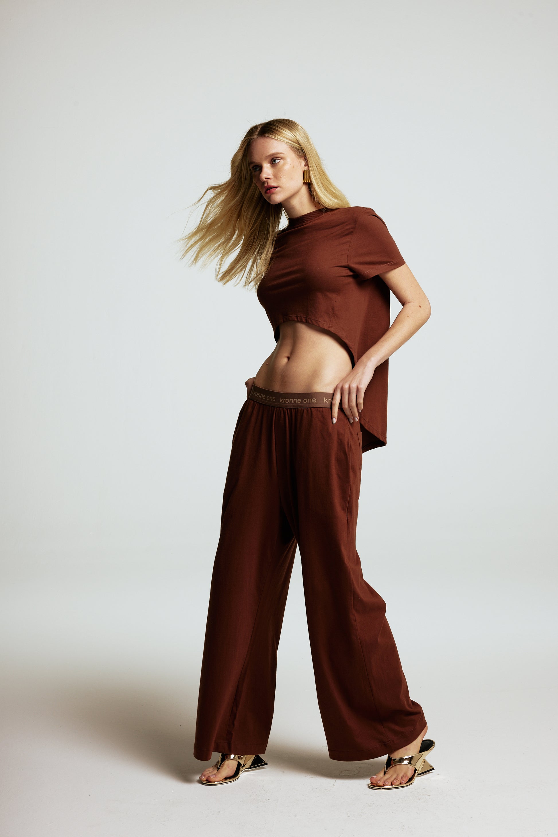 A blusa tem uma modelagem mullet, sendo mais curta na frente, e alongada nas costas (que por sua vez, tem barra boleada e pespontada). É feita em malha de algodão premium, imprimindo conforto e durabilidade.