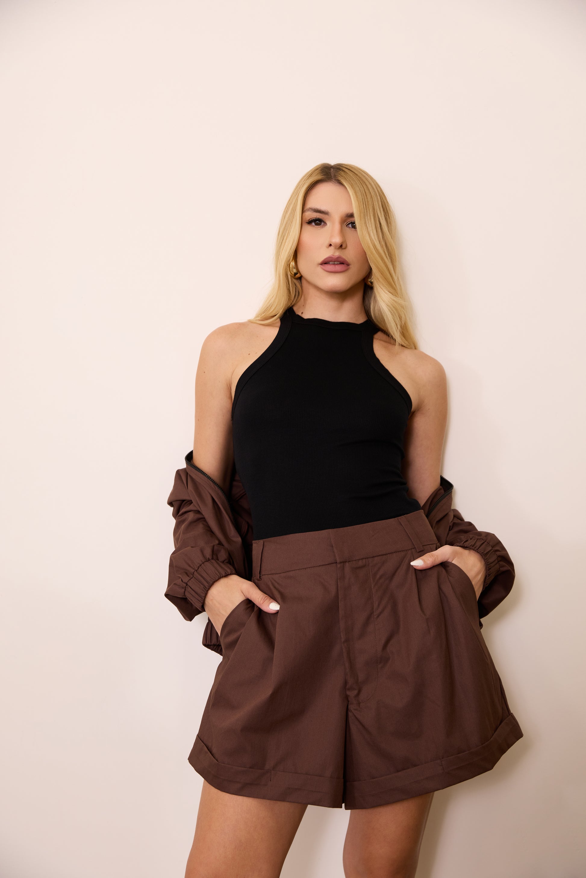 Regata cavada com decote nadador, confeccionado em tricô mais fino e macio.
