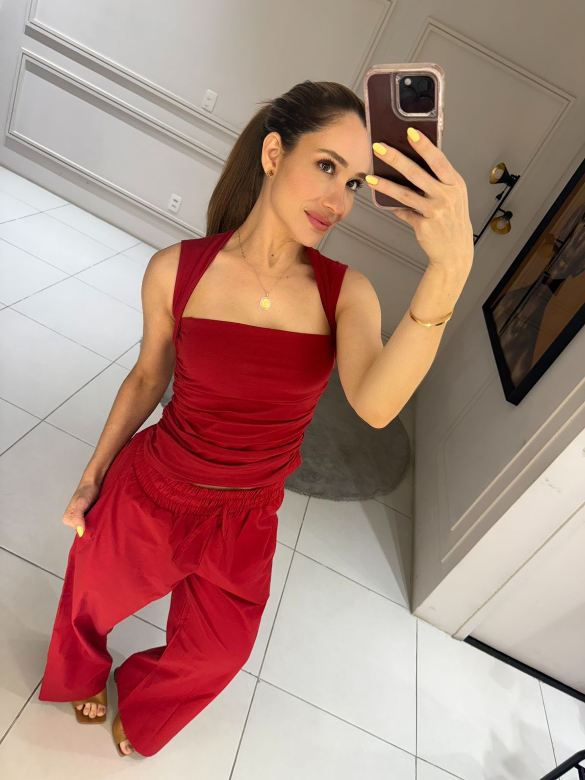 Blusa com decote quadrado e franzido nas laterais. Confeccionado em malha.